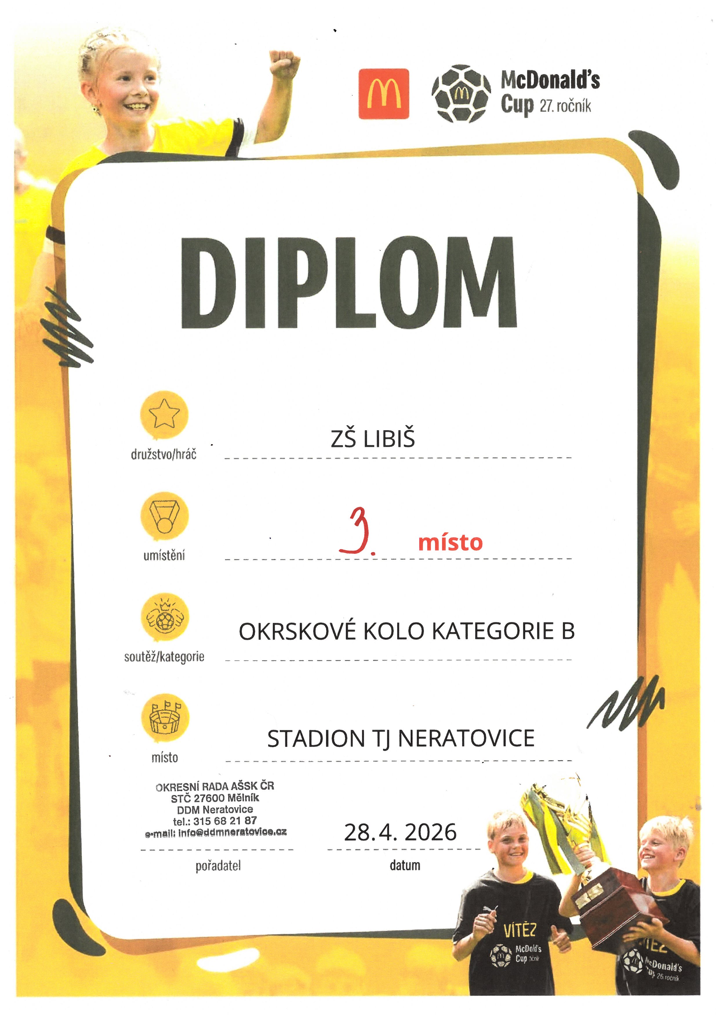Mladší žáci nás úspěšně reprezentovali na okresním kole Mc. Donald's Cupu.